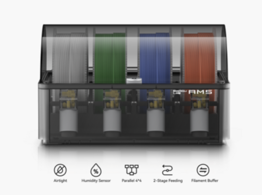 - AMS Lite: 최대 4색, A 시리즈 전용, 노출형 → 습도 관리 어려움
