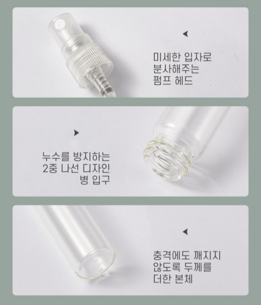 특히 향수를 자주 쓰는 분이라면 이런 소소한 편리함이 생각보다 크게 느껴질 수 있습니다. 작은 가방에도 넣기 좋고, 부담 없이 다시 뿌릴 수 있다는 점만으로도 만족도가 꽤 높아지더라고요. 향수를 더 자유롭게 즐기고 싶거나 외출용 공병을 찾고 있었다면 한 번 눈여겨보셔도 괜찮을 것 같습니다.