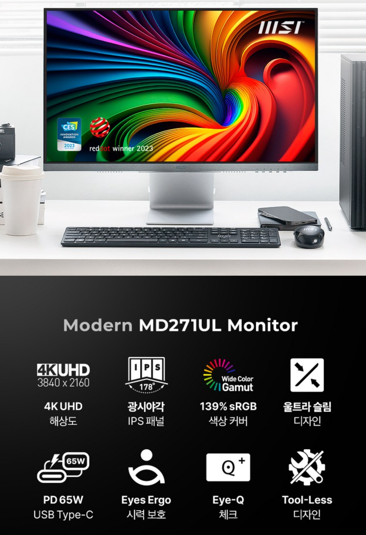 MSI 27인치 모니터 4K 60Hz IPS PD65W C타입 무결점 MD271UL - 게이밍 모니터 | 쿠팡