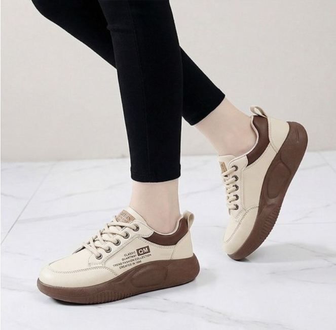 처음 이 신발을 선택할 때 가장 크게 본 건 역시 디자인이었습니다. 요즘은 운동화도 단순히 편한 것만으로는 잘 안 신게 되더라고요. 옷에 자연스럽게 섞이면서도 전체 분위기를 조금 더 세련되게 만들어주는 느낌이 있어야 자꾸 손이 가는데, 이 제품은 그 부분이 꽤 괜찮았습니다. 과하게 튀는 스타일은 아닌데 그렇다고 너무 평범하지도 않아서 청바지, 슬랙스, 조거팬츠 같은 기본 코디에 매치했을 때 전체적으로 정돈된 느낌이 들었습니다. 특히 발등부터 앞코까지 이어지는 라인이 답답해 보이지 않아서 가볍고 트렌디한 인상이 있었고, 통굽 디자인 덕분에 키높이 효과도 자연스럽게 살아나는 편이었습니다.